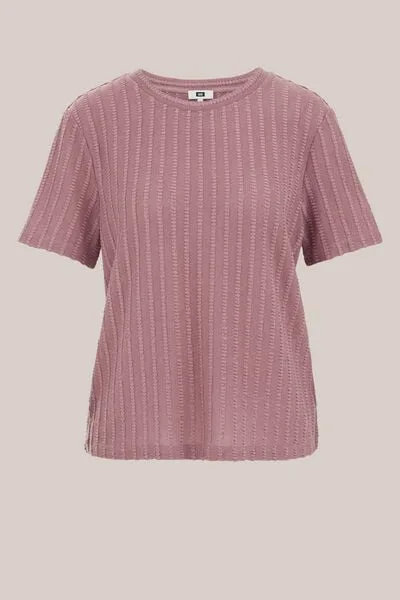 WE Fashion – Dames jersey T-shirt met open structuur – Regular fit – Mauve –
