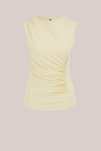 WE Fashion – Dames jersey top met plooidetail – Lichtgeel –