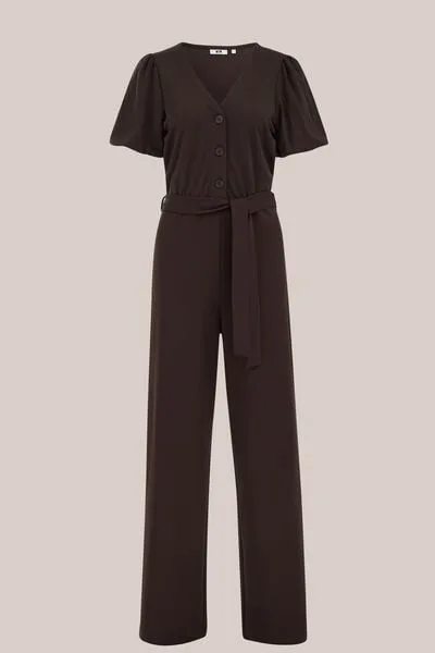 WE Fashion – Dames jumpsuit met strikceintuur – Donkerbruin –