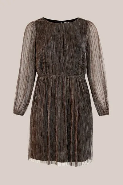WE Fashion – Dames jurk met glittergaren – Curve – Regular fit – Brons – Plus Size Prijzen