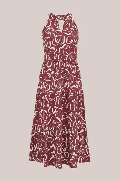 WE Fashion – Dames midi jurk met structuur – Regular fit – Donkerrood – Prijzen