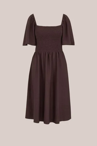 WE Fashion – Dames midi jurk – Regular fit – Donkerbruin –