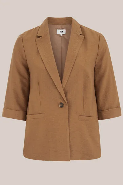 WE Fashion – Dames regular fit blazer met structuur – Curve – Regular fit – Lichtbruin – Viscose – Plus Size Prijzen