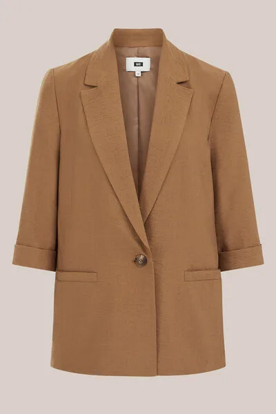 Goed voor de dag komen zonder keuzestress? Deze lichtgewicht blazer heeft een regular fit, blazerkraag en knoopsluiting. Voorzien van twee paspelzakken en 3/4e mouwen met omgeslagen boord. De fijne kreukstructuur zorgt voor een soepele look.