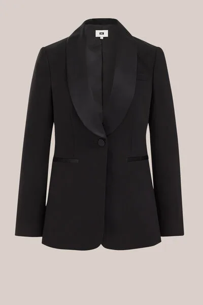 De klassieke little black dress, maar dan in blazer-vorm. Deze regular fit smoking blazer heeft een satijnen revers, een enkele knoopsluiting, twee paspelzakken met satijnen boord en lange mouwen met decoratieve knopen. Dé manier om gezien te worden.