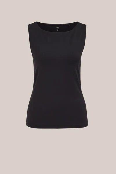 De perfecte basis. Deze second skin singlet heeft een boothals en brede bandjes. Dankzij de dubbele voering en stretchy stof voelt hij zacht en stevig tegelijk.