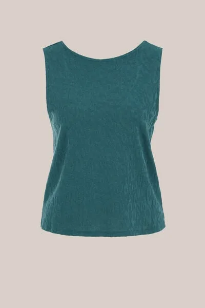 WE Fashion – Dames singlet met jacquard-print – Regular fit – Zeegroen – Katoen –