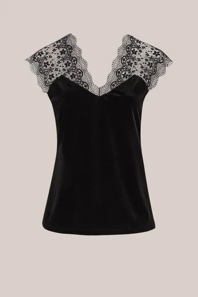 WE Fashion – Dames singlet met kant – Curve – Zwart – Plus Size Prijzen