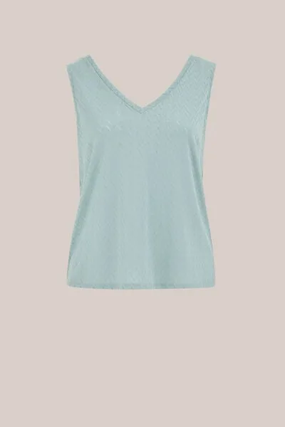 Verfijnd geweven en lekker luchtig. Dit singlet heeft een regular fit, een V-hals en een opengewerkt zigzagpatroon dat zorgt voor een elegante en zomerse uitstraling.