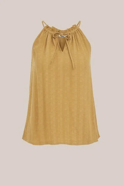 Specificaties: WE Fashion – Dames singlet met structuur – Regular fit – Mosterdgeel – Viscose –