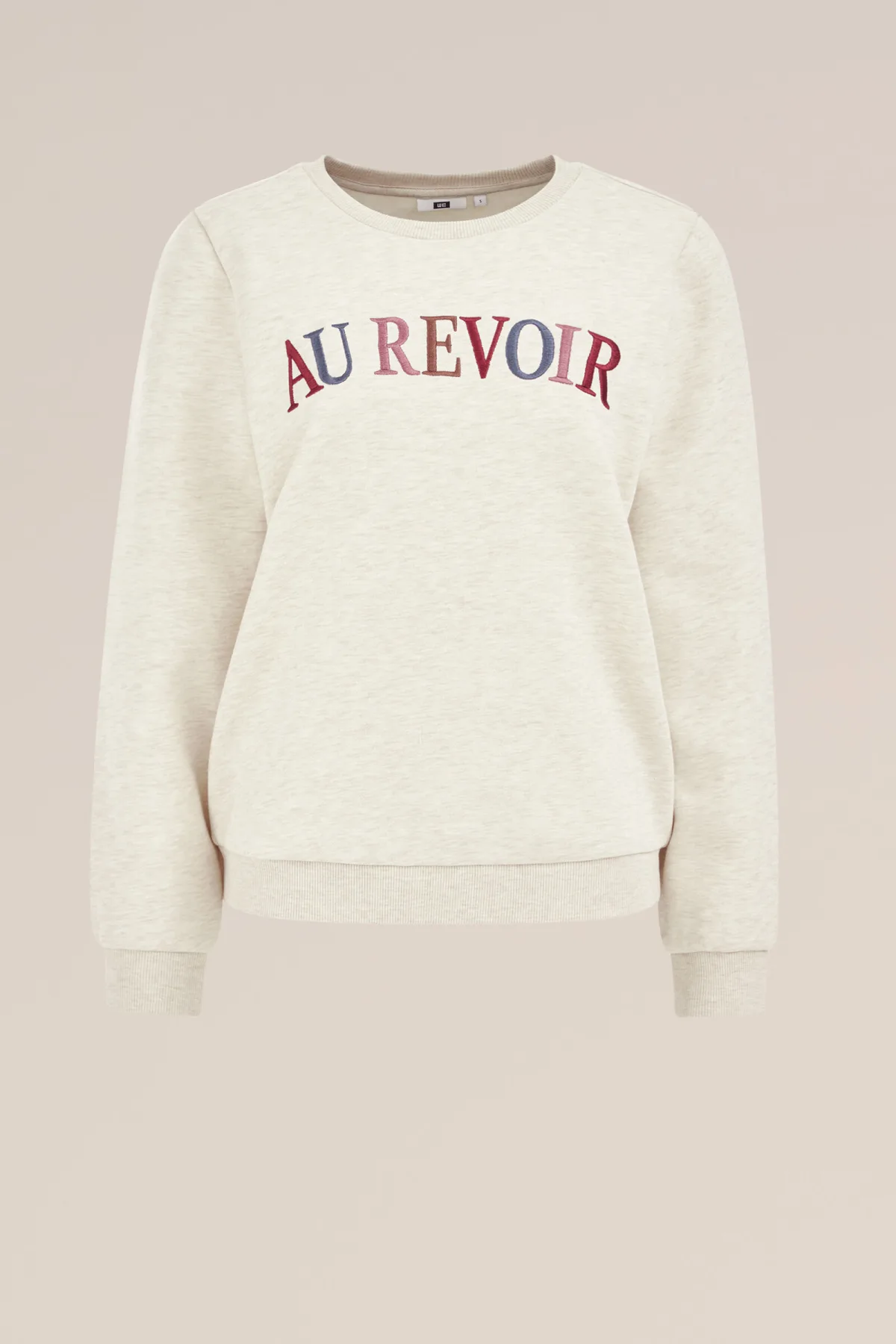 Een stijlvolle toevoeging aan je garderobe. Deze sweater heeft een regular fit, ronde hals en lange mouwen – een klassieker in de basis, met een speelse twist dankzij de geborduurde “au revoir”-tekst op de borst.