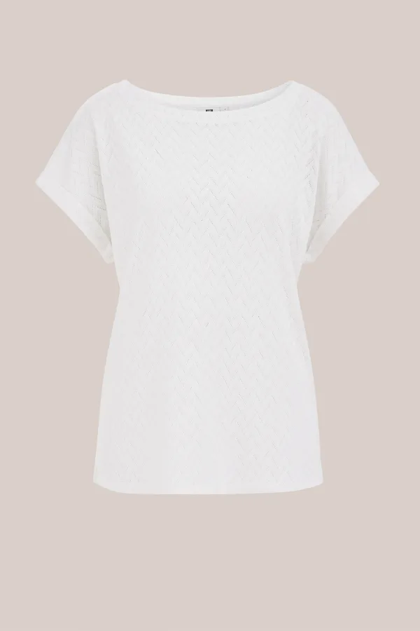 WE Fashion – Dames T-shirt met open structuur – Regular fit – Wit – Prijzen