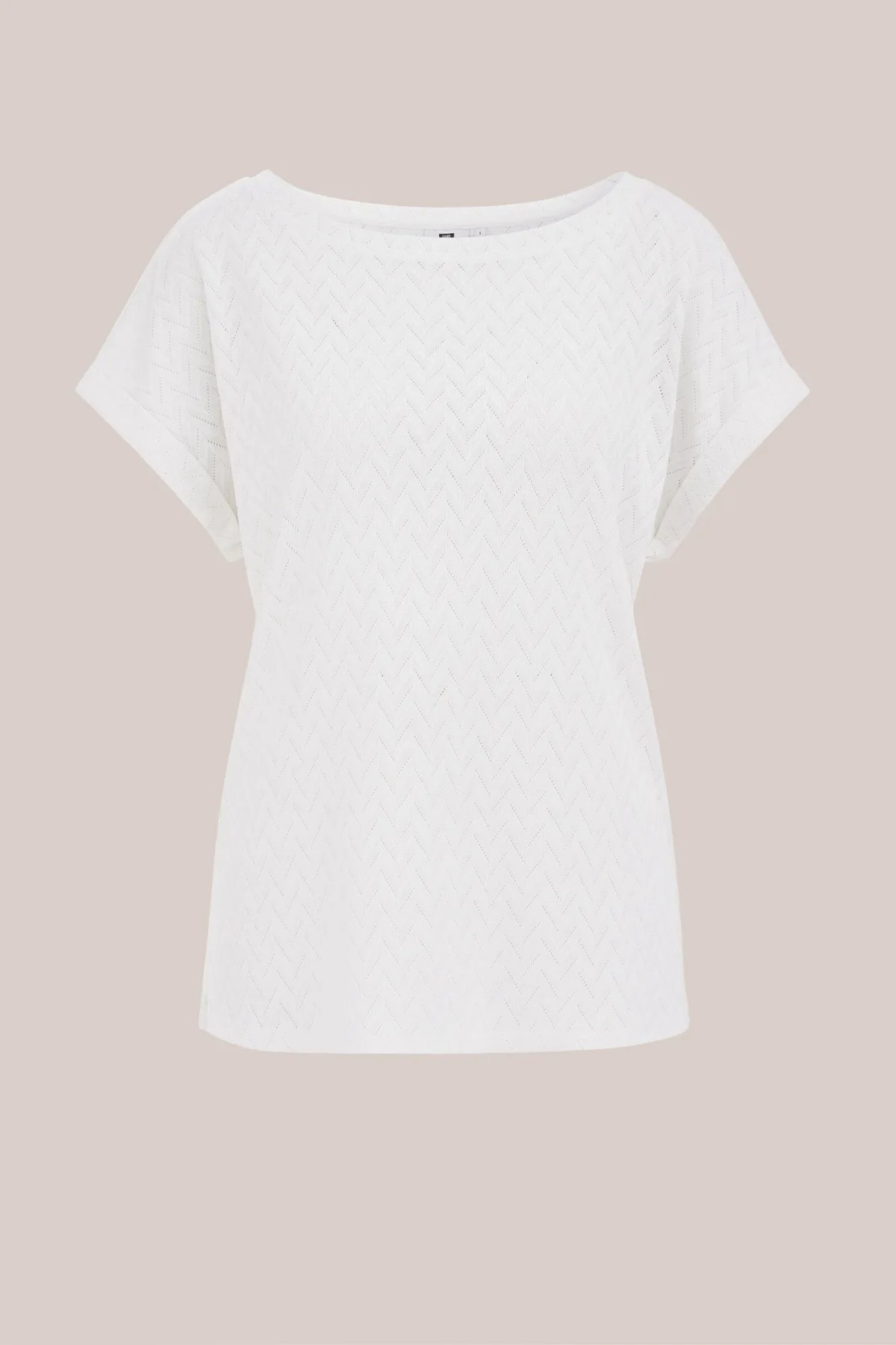 WE Fashion – Dames T-shirt met open structuur – Regular fit – Wit –