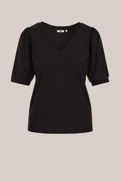 WE Fashion – Dames T-shirt met open structuur – Regular fit – Zwart –