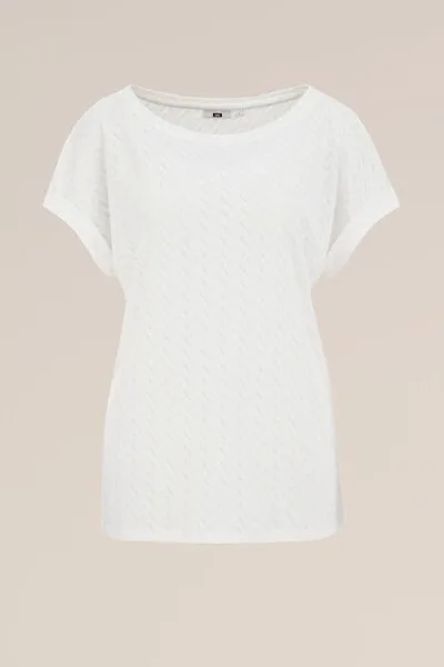WE Fashion – Dames T-shirt met opengewerkte structuur – Regular fit – Wit –