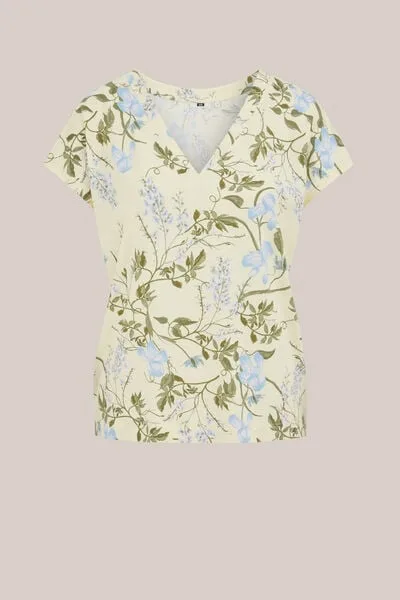 Wordt het een nieuwe favoriet? Dit regular fit T-shirt heeft een V-hals, korte mouwen en een all-over print. Kies uit een frisse bloemenpatroon of een subtiele zebraprint voor een moeiteloos modieuze look.