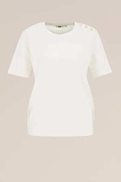 De strik -eh- knoop op je dag. Dit T-shirt heeft een regular fit, een ronde hals en korte mouwen. De gouden sierknopen op de schouder en de zachte stretchstof maken ‘m comfy, chic en alles ertussenin. Wedden dat je ‘m niet meer uit wilt trekken?