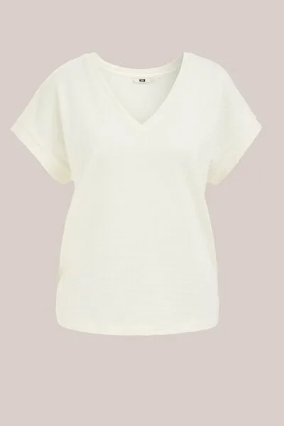 - Bij wefashion.com kun je WE Fashion - Dames T-shirt met structuur - Regular fit - Gebroken wit - kopen voor slechts €34,00