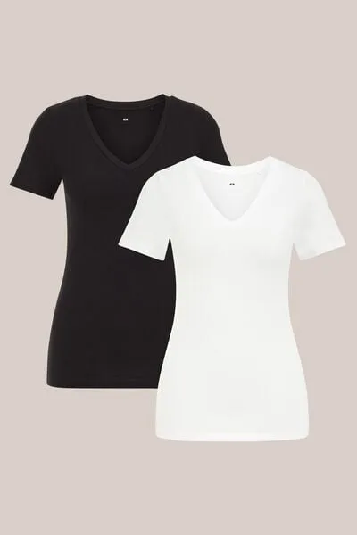 Specificaties: WE Fashion – Dames T-shirt met V-hals, 2-pack – Multikleur – Katoen –