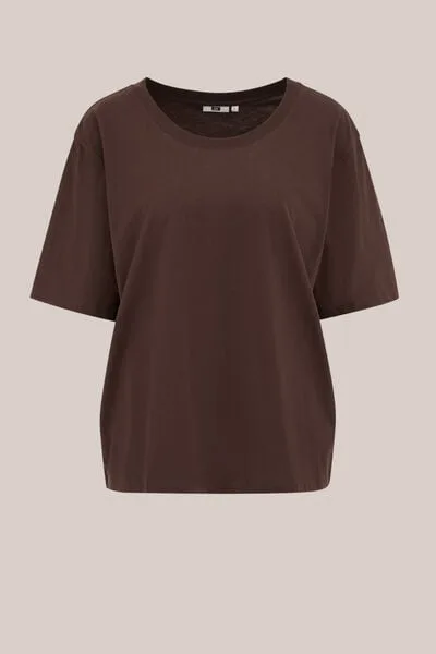 WE Fashion – Dames T-shirt – Regular fit – Donkerbruin – Katoen –