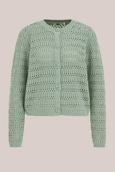 Zacht, luchtig en stijlvol. Dit vest heeft een regular fit, een korte lengte, een ronde hals en een knoopsluiting. Het is opengewerkt en gemaakt van zachte chenille voor een comfortabele en vrouwelijke look.