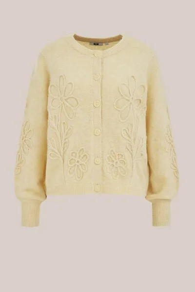 Wordt het een nieuwe favoriet? Dit regular fit vest heeft een ronde hals, lange ribmouwen, een knoopsluiting en 3D bloemen die voorop en op de mouwen zijn aangebracht – een moeiteloze, elegante upgrade voor elke look.