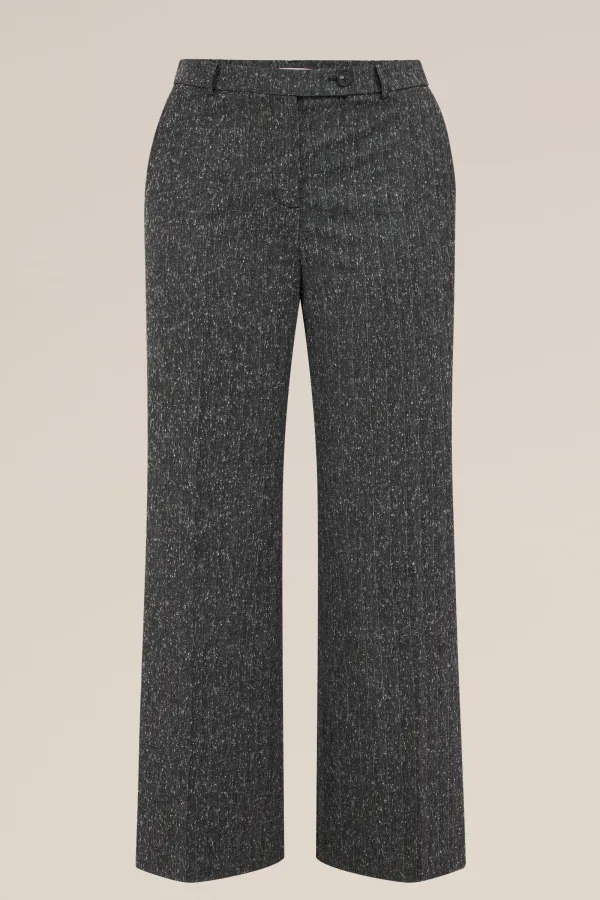 Het antwoord op de vraag: wat moet ik aan? Deze pantalon met structuurstof en wijde pijpen heeft een relaxte fit, steek- en paspelzakken en een knoop- en ritssluiting.