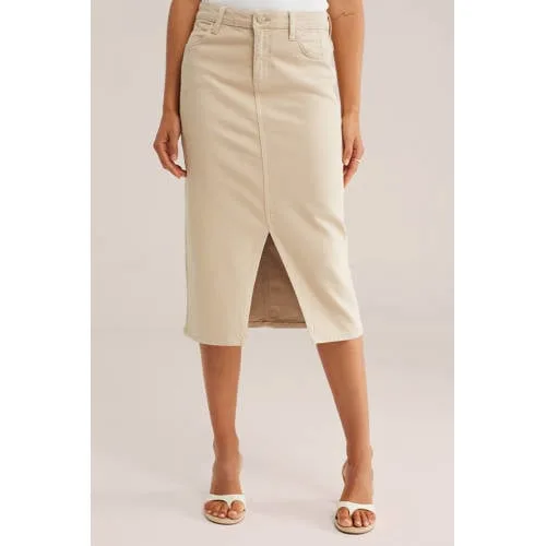 Voor een moderne basis in je kledingkast is deze WE Fashion dames midi denim rok een slimme keuze. De rok heeft een middelhoge taille en een midi lengte, waardoor hij zowel netjes als casual te stylen is. Gemaakt van katoen met een beetje stretch, volgt het materiaal je beweging zonder strak te voelen. De ecru kleur geeft een frisse, lichte uitstraling die goed past bij het voorjaar en de zomer.Kenmerken van deze midi denim rok Midi lengte met kokerpasvorm voor een stijlvolle, rechte lijn langs het lichaam Middelhoge taille met regular fit voor dagelijks draagcomfort Vijf-pocketstyling met steekzakken voor en achter, net als bij je favoriete jeans Rits- en knoopsluiting en riemlussen zodat je eenvoudig een riem kunt toevoegen Kleine split aan de voorkant voor extra bewegingsvrijheid tijdens lopen en fietsen Gemaakt van katoen met stretch voor een soepele en zachte touch Effen ecru kleur die makkelijk combineert met basics en printsElke dag draagbaar, van werk tot weekendDeze denim midi rok past bij veel momenten op de dag. Combineer met een T-shirt en sneakers voor een relaxte look, of met een blouse en loafers als je net iets gekleder wilt gaan. Dankzij de split aan de voorkant beweeg je je makkelijk door de dag, ook als je veel onderweg bent.WE Fashion, vertrouwd en eigentijdsWE Fashion staat bekend om toegankelijke mode die goed aansluit op het dagelijks leven. De collecties volgen de trends, maar blijven tegelijk draagbaar en duidelijk in stijl. Met deze rok haal je een betrouwbaar basisstuk in huis dat lang onderdeel kan zijn van je garderobe.Een comfortabele midi denim rok waar je het hele seizoen veel aan hebt.