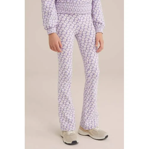 Deze flared meidenbroek van WE Fashion is gemaakt van viscose en heeft een lila-witte kleur. De broek heeft een elastische tailleband en lange broekspijpen. Perfect voor meisjes die trends willen volgen in comfort.