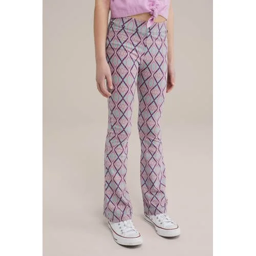 WE Fashion flared broek paars/lichtblauw/roze
