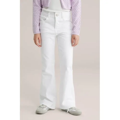 Deze witte meisjes flared jeans van WE Fashion past goed bij al haar dagelijkse outfits en voelt comfortabel aan. De broek heeft een regular fit, een mid rise en wijd uitlopende pijpen die mooi om het been vallen. Gemaakt van katoen met een beetje stretch volgt het materiaal haar bewegingen soepel, of ze nu aan het spelen is, naar school gaat of chillt in het weekend.Details die het verschil maken Flared model met wijd uitlopende pijpen voor een sierlijk silhouet Regular fit en mid rise taille voor een goede pasvorm rond heupen en buik Klassiek 5-pocket design met twee achterzakken, twee steekzakken en een muntzakje Gemaakt van katoen met stretch, waardoor de stof zacht aanvoelt en licht meerekt Rits- en knoopsluiting aan de voorkant voor eenvoudig aan- en uittrekken Effen witte kleur die makkelijk te combineren is met T-shirts, truien en blouses Geschikt voor schoolkinderen en tieners, geschikt voor dagelijks gebruikVoor school, weekend en alles daartusseninDeze lange flared broek uit de Daily collectie is een praktische basis voor haar garderobe. In combinatie met sneakers en een hoodie ontstaat een ongedwongen look voor naar school, terwijl een blouse of topje de jeans geschikt maakt voor een feestje of etentje. De stretch in de stof zorgt ervoor dat ze zich vrij kan bewegen tijdens al haar avonturen.Vertrouwde stijl van WE FashionWE Fashion staat bekend om toegankelijke mode voor elke dag, met aandacht voor pasvorm en draaggemak. Deze meisjesbroek sluit daar goed op aan, met details die zijn afgestemd op het actieve leven van kinderen en tieners.Een flared jeans waar zij zich de hele dag prettig in voelt en die jij keer op keer uit de kast pakt.