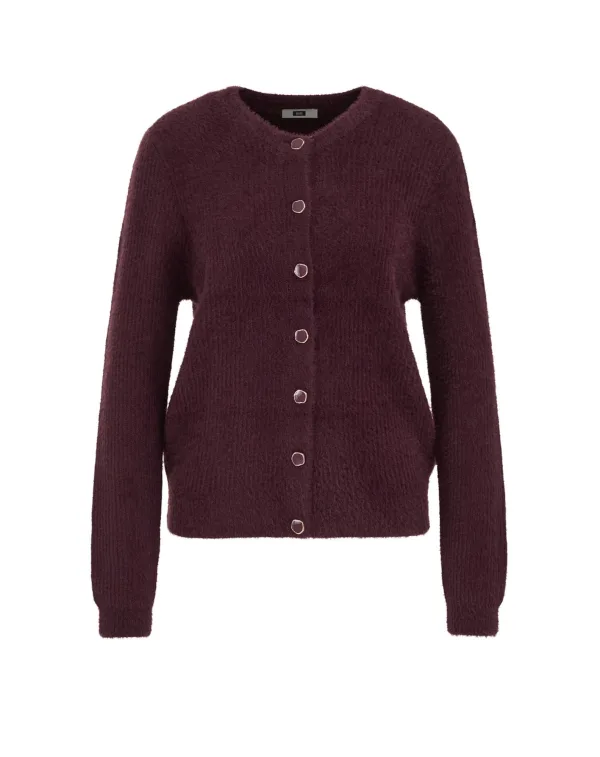 Design: Geribbelde kraag, Geribd ceintuurtje; Type sluiting: Knoopsluiting; Materiaal: Knitwear; Halstype: Ronde hals; Motief: Effen; Extra's: Met textuur; Pasvorm: Normale pasvorm; Armlengte: Lange mouw; Lengte: Normale lengte