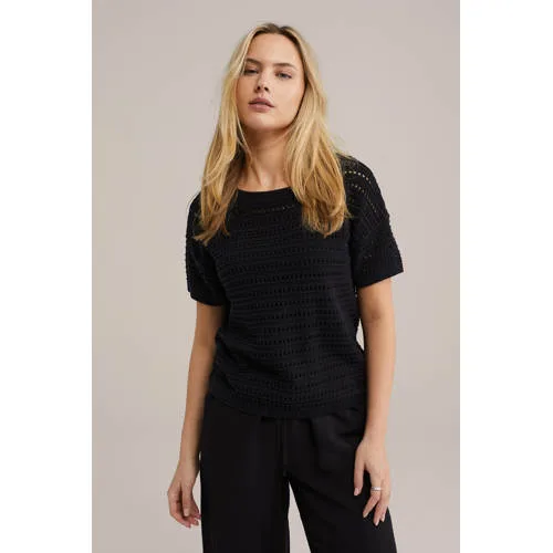 WE Fashion Dames gebreide trui met opengewerkte structuur Regular fit...