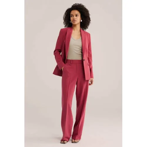 Omarm kracht en elegantie in één adem. Deze blazer van luxueuze fijn geweven kwaliteit met comfort stretch omarmt je figuur met een slanke fit. Geniet van de enkele knoopsluiting, klepzakken, split achterpand en lange mouwen. Voel de vrijheid van beweging met extra ruimte in de voering.