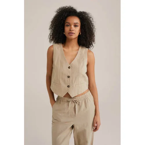 - De laagste prijs van WE Fashion - Dames gilet van linnenmix - Regular fit - Beige - Linnen - werd gevonden op 26 april 2026 18:49.