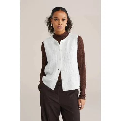 Dit WE Fashion dames gilet is een veelzijdige extra laag voor momenten waarop je wat meer warmte en structuur wilt. Het gilet is mouwloos en heeft een ronde hals, waardoor het prettig over een blouse, longsleeve of dunne trui valt. De effen kleur zorgt voor een rustige uitstraling en laat andere kledingstukken goed tot hun recht komen. Dankzij de knoopsluiting aan de voorkant bepaal je eenvoudig hoe open of gesloten je het gilet draagt.Stijlvolle laag met doordachte details Mouwloos gilet dat prettig over diverse tops te dragen is Effen kleur voor een rustige en tijdloze basis Ronde hals die mooi langs de halslijn valt Knoopsluiting aan de voorkant voor praktisch openen en sluiten Gemaakt van polyester, wol, alpaca en elastaan voor een vormvast en comfortabel gevoel Zonder zakken voor een glad en verzorgd silhouetComfortabel in dagelijks gebruikMet de mouwloze snit beweeg je gemakkelijk door de dag. De combinatie met wol en alpaca zorgt voor aangename warmte, terwijl elastaan bijdraagt aan een soepele pasvorm die goed aansluit zonder strak te zitten.WE Fashion als vertrouwde basisWE Fashion richt zich op moderne kleding met een heldere stijl en betrouwbare pasvormen. Het merk combineert draagbaar design met aandacht voor details, zodat de kleding prettig zit en eenvoudig te combineren is met je bestaande garderobe.Een gilet dat je garderobe op een subtiele en doordachte manier verrijkt.