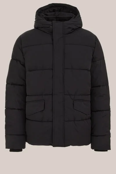 Perfect voor het najaar. Deze pufferjas heeft een regular fit, vaste capuchon en lange mouwen met slanke ribboorden. Het item sluit met een rits en daarover een blinde drukknoopsluiting. Dankzij een waterafstotende finish, twee klepzakken met drukknoop en een binnenzak is hij net zo praktisch als stijlvol.