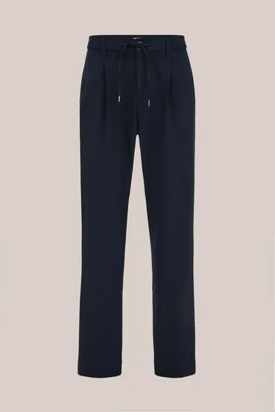 Altijd een stijlvolle keuze. Deze chino heeft een regular fit, een elastische tailleband met aantrekkoord, rechte pijpen met een nette plooi, een rits- met knoopsluiting en vier zakken.