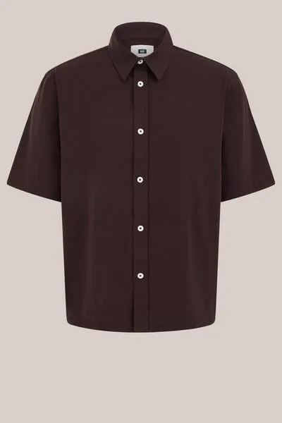 WE Fashion – Heren regular fit jersey overhemd – Regular fit – Donkerbruin – Katoen –