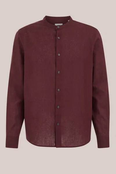 Kraag omhoog of kraag omlaag: meer keuzestress wordt het niet. Dit overhemd heeft een rechte pasvorm, een mao-kraag en een knoopsluiting met lange mouwen en manchetten. De linnenmix draagt luchtig en is makkelijk in onderhoud. Hebben!