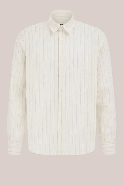 WE Fashion – Heren regular fit overhemd van linnenmix – Regular fit – Gebroken wit – Linnen –