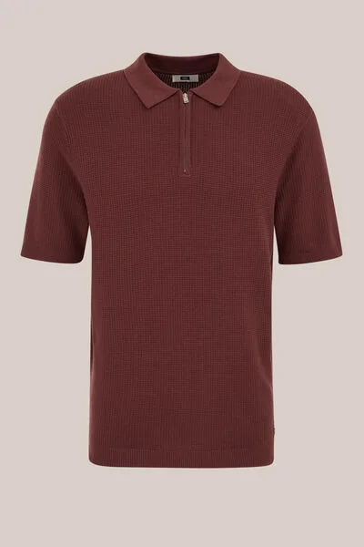 WE Fashion – Heren regular fit polo met structuur – Regular fit – Bordeauxrood – Katoen –