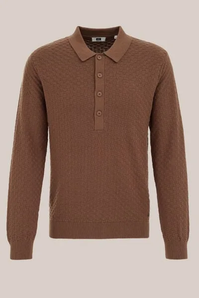 Een essential in je kledingkast. Deze polo met regular fit heeft een polokraag met drie knopen, lange mouwen en een subtiele blokjesstructuur. De boorden aan mouwen en onderzijde zorgen voor een moderne afwerking.