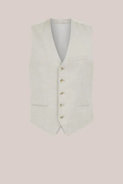 Voor wie een driedelig pak rockt alsof het een hoodie is. Dit gilet heeft een slim fit met structuur voor, satijnlook achterpand met gesp, paspelzakken, sierpaspelzak op de borst, vijf knopen en een ophanglus. Combineert met het modulaire pak.