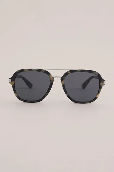 Wees een piloot zonder de vlieguren. Deze zonnebril heeft een gevlekt pilotenmontuur, zilverkleurige details, donkergrijze glazen, UVA/UVB-bescherming en een microfiber hoesje. Nu alleen nog stoer kijken bij laagstaande zon.
