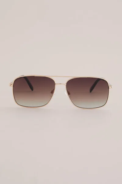 Voor iedereen die op citytrip nét iets te veel in etalages tuurt. Deze zonnebril heeft vierkant afgeronde glazen, metalen frame met neuspootjes, UVA/UVB-bescherming en microfiber hoesje, in zwart met groen glas of roségoud met bruin glas.
