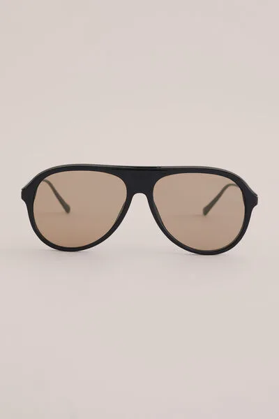 Voor mannen die het tempo van een stad bepalen op basis van koffietentjes. Deze zonnebril heeft een zwart pilotenframe met lichtbruine glazen, metalen uiteinden, UVA/UVB-bescherming en een microfiber hoesje. Die wil je hebben.
