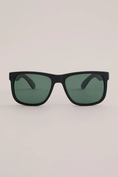 Voor mannen die van keuzes houden, maar niet te veel. Deze zonnebril heeft vierkante glazen, UVA/UVB-bescherming en microfiber hoesje, in mat zwart met groen glas of transparant donkergrijs met blauw glas. Werkt goed bij alles wat jeans heet.