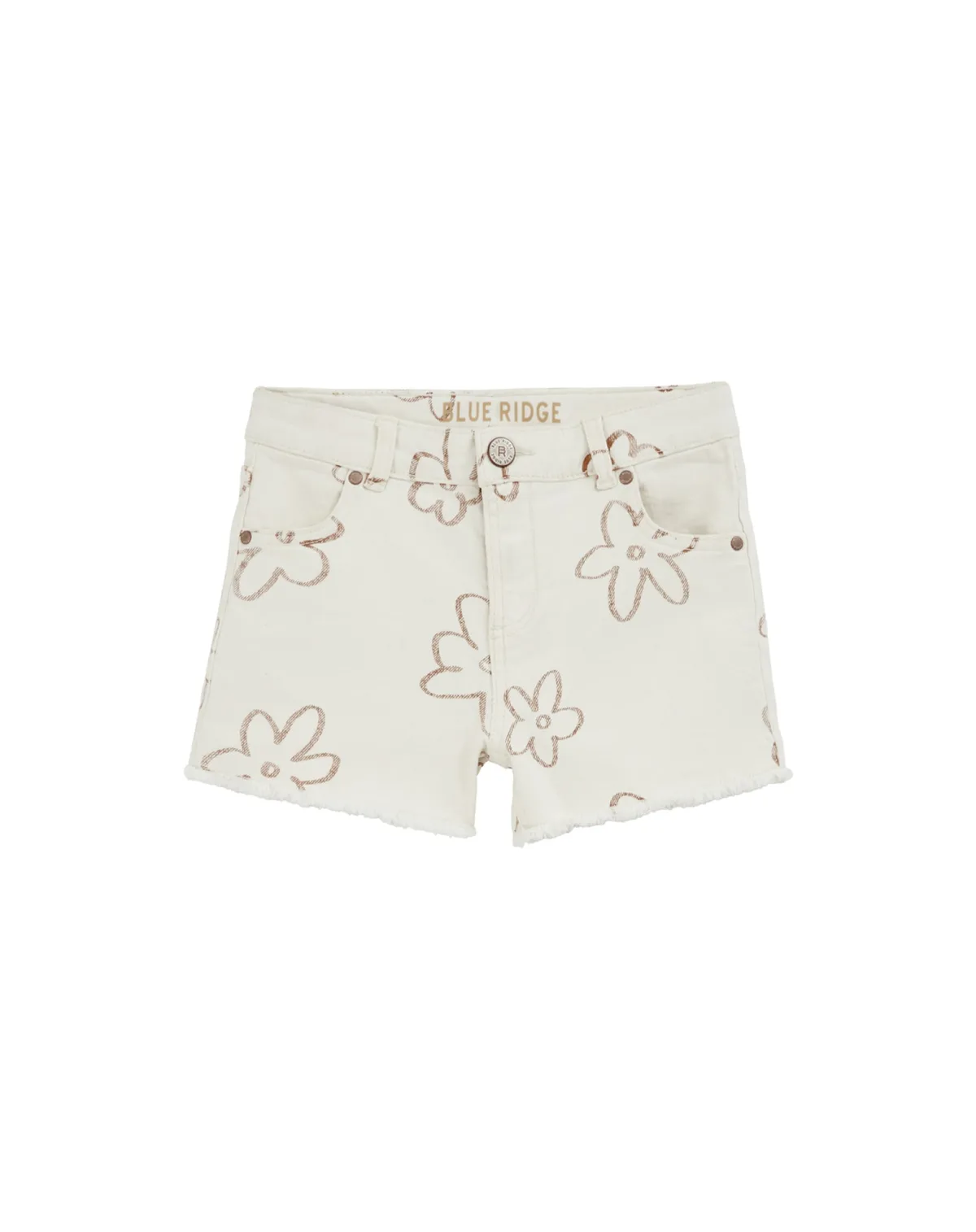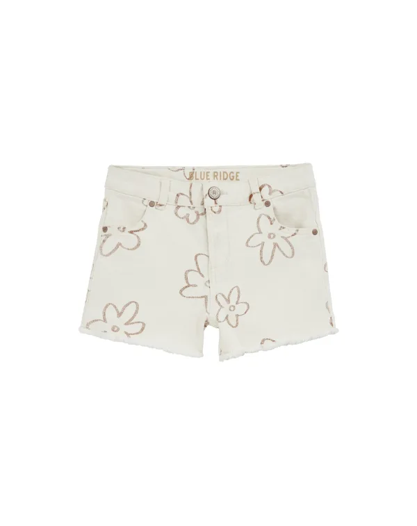 Design: Gefranjerde zoom, Ritssluiting, Zakken aan de zijkant; Type sluiting: Ritssluiting; Materiaal: Denim; Motief: Bloemenprint; Extra's: All-over patroon, Riemlussen; Wassing: Colored denim; Lengte: Kort/mini; Pasvorm: Slimfit