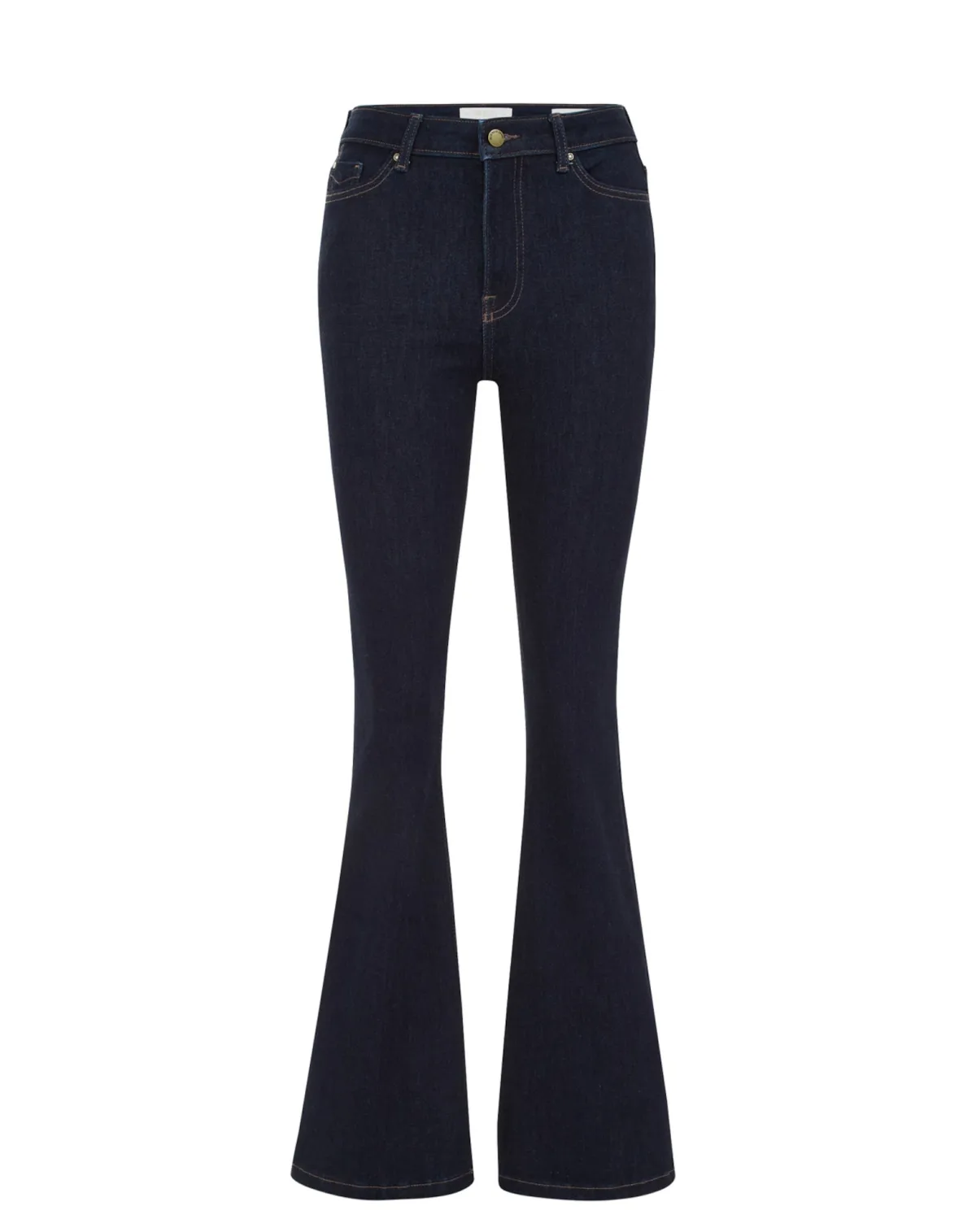 Design: 5-pocket-style; Type sluiting: Ritssluiting; Materiaal: Denim; Motief: Effen; Extra's: Riemlussen; Wassing: Blauw denim; Lengte: Lang/maxi; Pasvorm: Flared; Taillehoogte: High waist